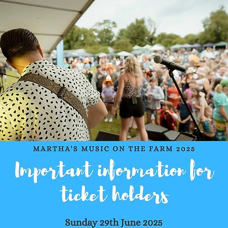 Important information for ticket holders – Martha’s Music on the Farm on Sunday 29th June 2025 in the fields of Solley’s Ice Cream Parlour, Ripple. This event is now SOLD OUT.